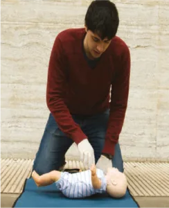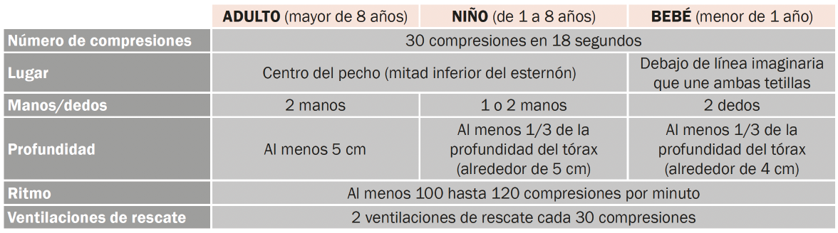 Lactantes: puede realizarse con dos dedos (si hay un solo socorrista) o con ambos pulgares rodeando el tórax (si hay dos socorristas).