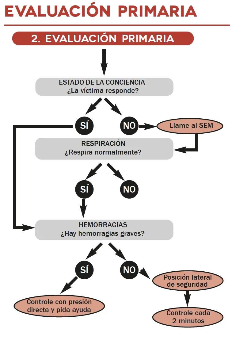 La evaluación primaria identifica si hay riesgo de vida inmediato: